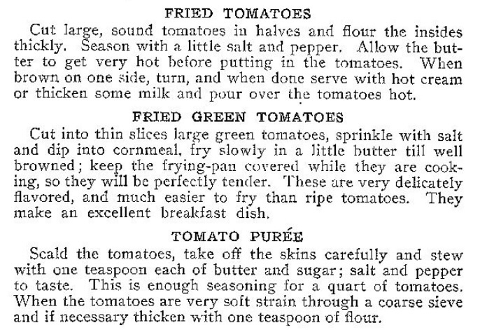 In the late nineteenth and early twentieth centuries, recipes began appearing in more cookbooks, magazines, and newspapers, including Jewish cookbooks. For Jewish families, fried green tomatoes could be prepared kosher, and ingredients like flour and cornmeal traditionally used for breading can be substituted for matzo meal.